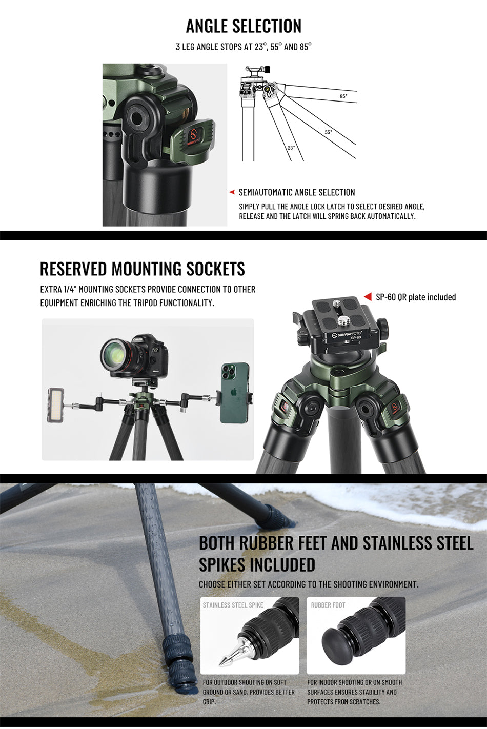 ✪Utilizing the SUNWAYFOTO tripod tube structure which is resistant to water and sand, ensuring this tripod kit is suitable to work under severe conditions outdoors.